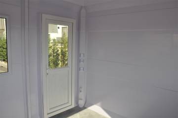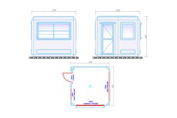 Polyester Kabin 270x270, genişliği sayesinde birden fazla personelin rahatça çalışabileceği bir ortam sağlar. İç mekana ek donanım veya mobilya ekleyerek, kabini bir güvenlik kontrol noktası, vale hizmet alanı veya şantiye ofisi olarak kullanabilirsiniz.