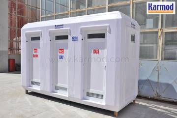 Karmod Wc - duş kabini içerisinde her türlü ayrıntı düşünülerek üretilmiş. Seyyar tuvalet ünitelerinde alaturka yer taşı veya alafranga klozet modelini tercih edebilirsiniz. Seyyar duş üniteli kabini de seçebilirsiniz. Tekli wc - duş modellerinde bu üç ayrı ünite seçimi tercihinize bağlı olarak standart üretim yapılıyor. Opsiyonel uygulama olarak üniteler pisuar takılabiliyor. Yine engelli kullanımına özel engelli wc kabini üretiliyor. Bu kabinde kullanımı kolaylaştırmak için geniş ve sağa sola hareketli kapı, engelli rampası, engelli tutmaç ve özel ünitesi uluslararası standartlarda hazır ediliyor.