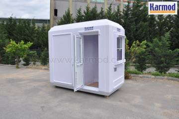 Polyester kabin modeliyle üretilen seyyar tuvalet kabininin tekli ünitesi 150x150 cm ölçülerine sahip. En az yer kaplayan ölçüşüyle konulduğu her yere pratik kullanım kazandırıyor. Bu kabin modelinde ikili, üçlü, dörtlü ünitelerde hazır tuvalet kabini bitmiş halde standart üretim yapılıyor. Stoklu wc – duş kabinleri satış sonrası aynı gün teslimat yapılabiliyor. Müşteri tercihinde aynı yapıda 5 ve üzeri ünitede polyester tuvalet kabini istendiğinde modüler sevk edilen yapı kullanım yerinde kuruluyor. Duvar ve çatı panelleriyle beraber tüm üniteleri demonte vaziyette sevk ediliyor. Karmod uzmanlarınca kısa sürede kurulum yapılarak yine hazır wc – duş olarak hizmete alınabiliyor. Bu modeldeki ünitelerde istenildiği adette yer taşı, klozet, duş kabini, engelli tuvalet kullanımında uygulamalar gerçekleştirilebiliyor. CTP polyester kabinde bekçi kulübeli güvenlikli wc kabin modelleri de yer almaktadır.